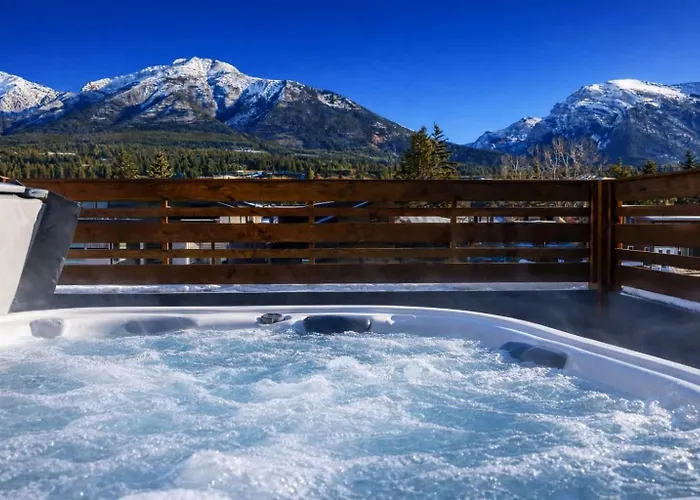 Gear Upから徒歩で5分以内に位置する寝室4室のキャンモア Aurora Lights - Luxe Townhouse Private Hot Tubヴィラからは、周辺のさまざまな市内観光スポットへ行きやすいです。 クワリー・レイク・パークから2.4kmの距離位置し、浴室4室の別荘はWiFiと駐車場を提供しています。